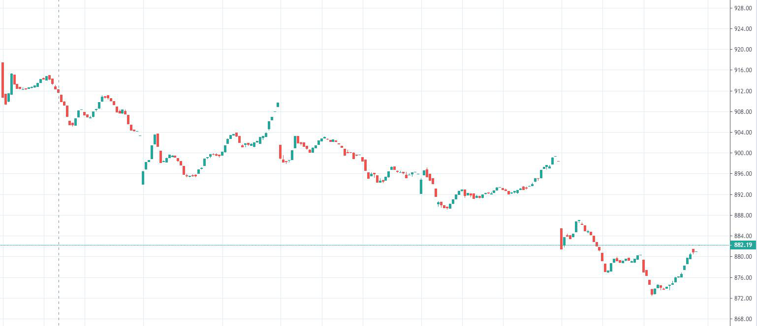 Tại Việt Nam, chỉ số VNIndex cũng giảm điểm mạnh trong tuần qua khi mất tới 35 điểm (từ 917 điểm xuống chỉ còn 882 điểm, tương đương với -4%) sau những tin tức không tốt về dịch Covid-19 từ Hàn Quốc và Ý.