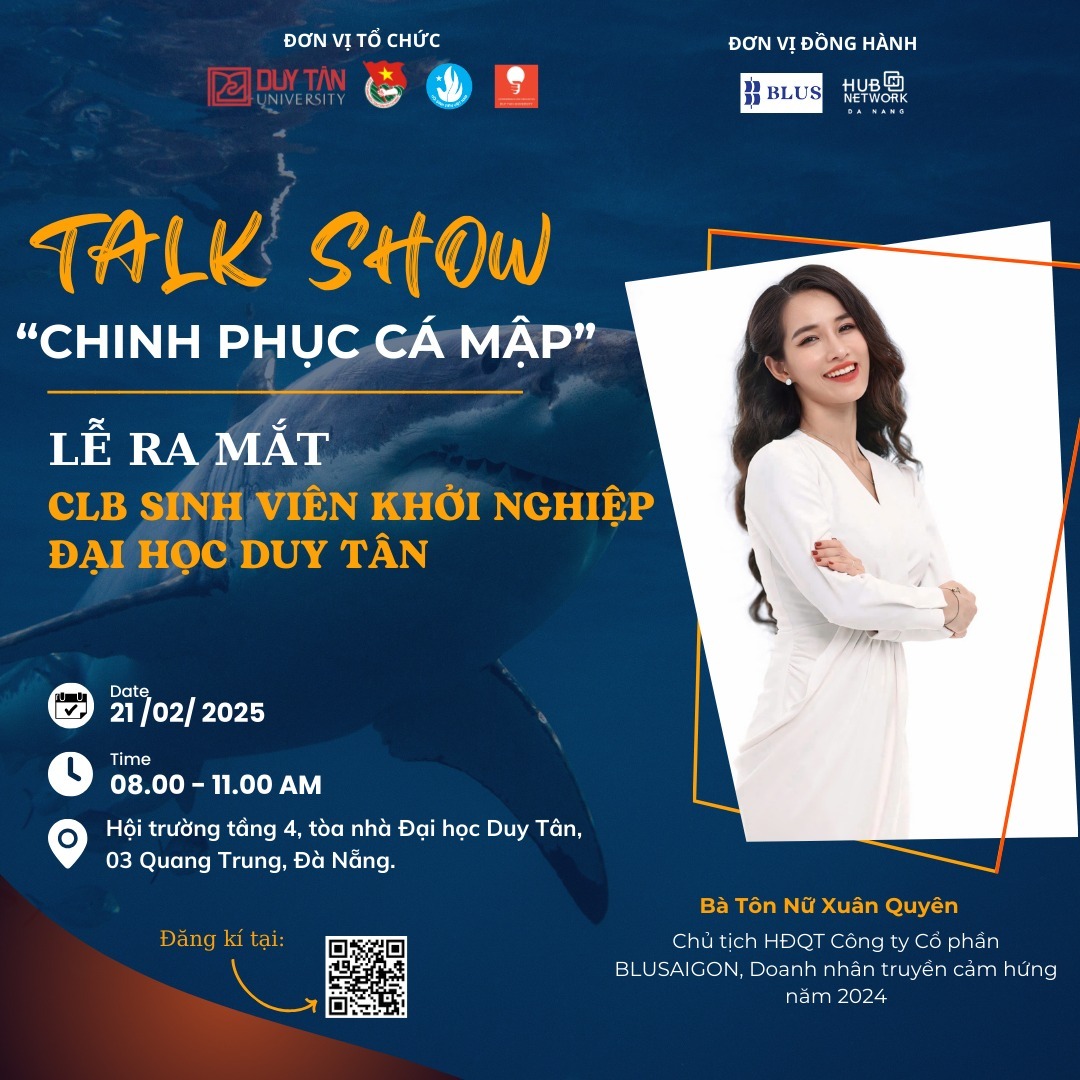 TALKSHOW “CHINH PHỤC CÁ MẬP” – LỄ RA MẮT CLB SINH VIÊN KHỞI NGHIỆP ĐẠI HỌC DUY TÂN
