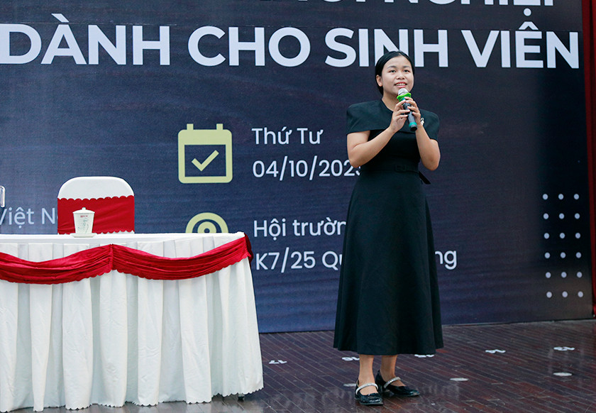 Diễn giả Lê Uyên Thảo - Phó Tổng Giám đốc Công ty Brain Hub Việt Nam chia sẻ: “Để có hành trình khởi nghiệp thuận lợi thì ngay từ bây giờ, các bạn hãy học tập nghiêm túc để có nền tảng kiến thức chuyên môn vững vàng và tự trang bị những kỹ năng ‘mềm’ cần thiết cho công việc. Thêm vào đó, bạn nên tích cực tham gia các hoạt động xã hội trong quá trình học tập để mở rộng hiểu biết cũng như biết cách mở rộng các mối quan hệ xã hội cần thiết. Ngoài ra, để bắt đầu hoạt động khởi nghiệp, bạn không chỉ phải biết cách tìm tòi các ý tưởng mới lạ và chủ động sáng tạo mà cần thể hiện trách nhiệm đến cùng với đam mê và công việc của bản thân.”
