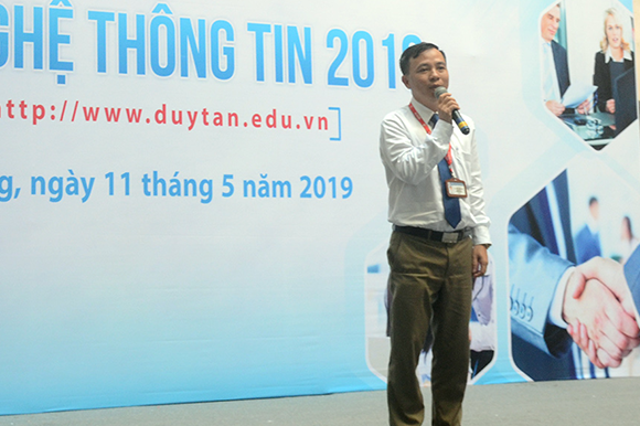 TS. Nguyễn Hữu Phú, Phó Hiệu trưởng Đại học DuyTân phát biểu khai mạc Ngày hội Việc làm Công nghệ Thông tin 2019